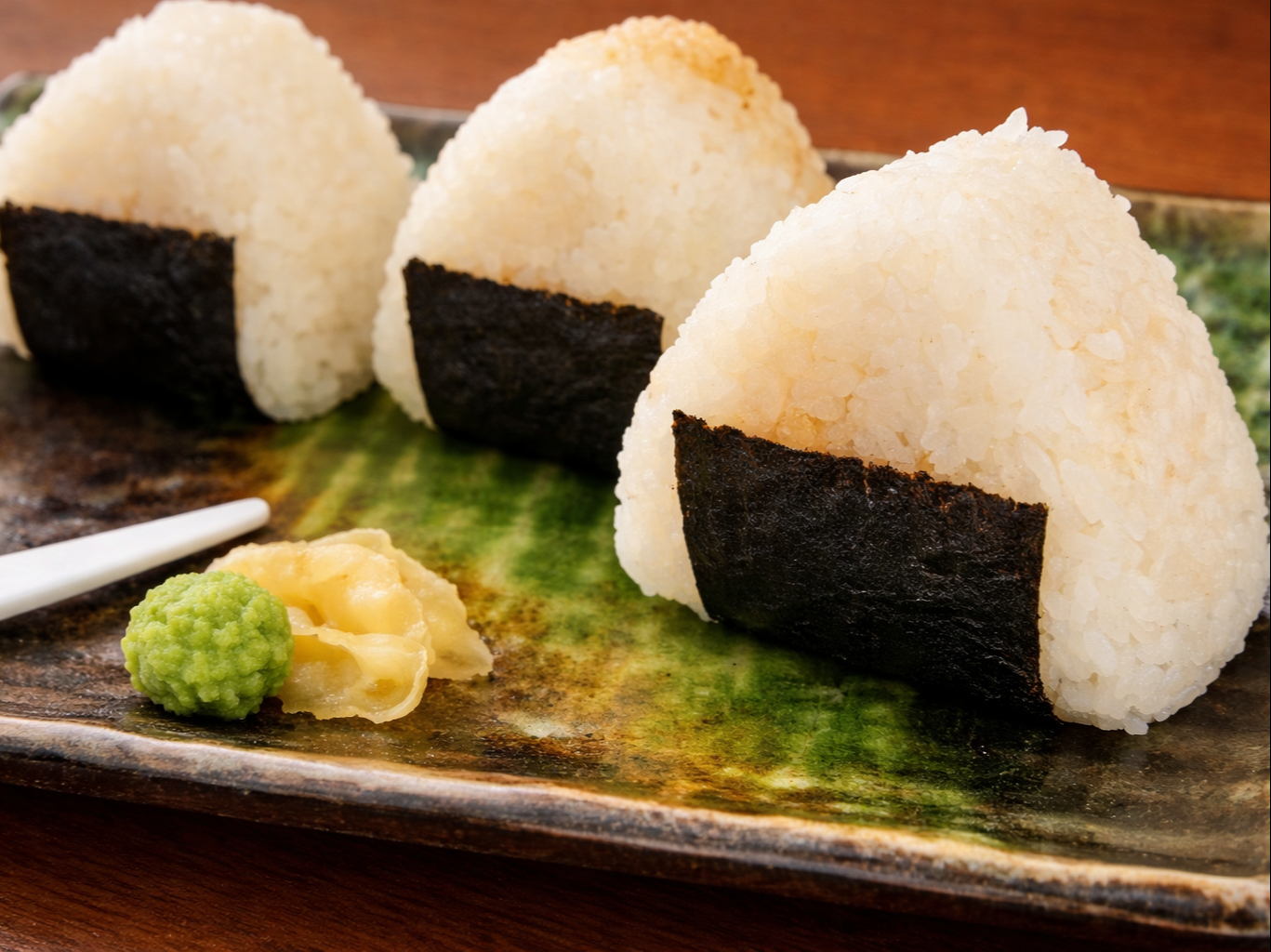 Nori, sushi rice, cucumber, avocado, asparagus, sesame seed
